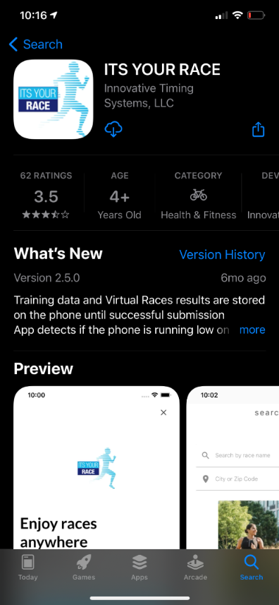 Click the links above, or search the app stores for ITS YOUR RACE